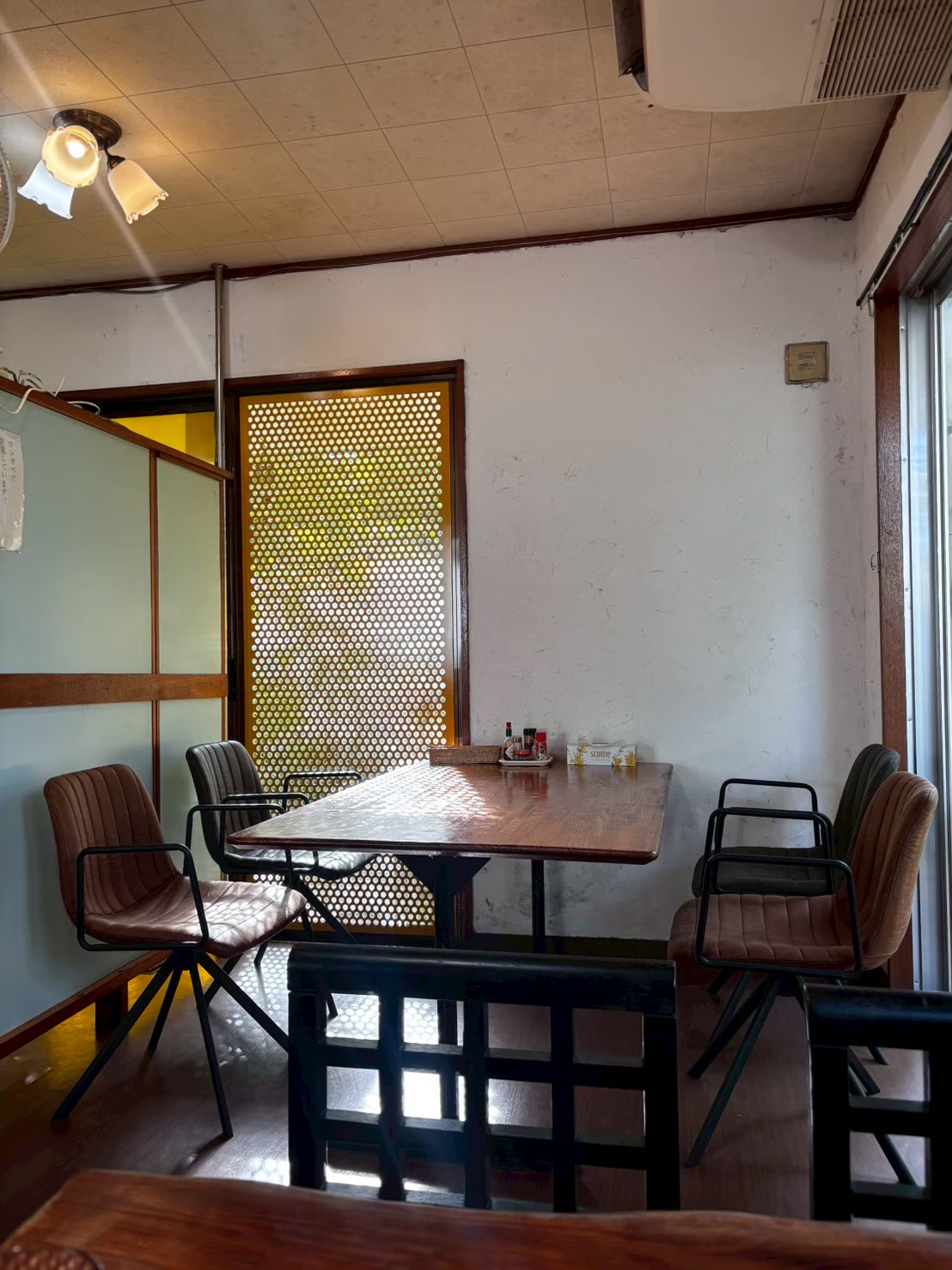 店内は、落ち着いた雰囲気です。テーブル席があり、一人でもグループでもゆっくりと食事ができます。美味しい時間を過ごせる居心地の良い空間です。